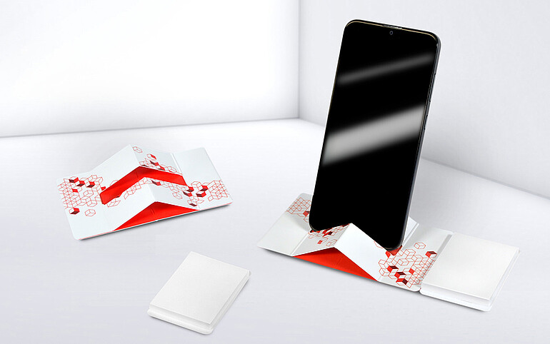 They’re always with us wherever we go – our smartphones. This is because the small mini computers are real all-rounders and therefore useful aids in our daily (office) lives. It’s no wonder that people look at their mobile phone screens between 50 and 80 times every day. To help you to keep your hands free, the packaging and advertising media specialist Karl Knauer has now taken one of the most important office tools, the practical adhesive note set, and given it a smart extra feature: an integrated mobile phone holder made of cardboard. The clever cardboard holder is designed to store almost all smartphone models and sizes and hold them securely. “Our goal is to create products that are clever, offer added value and are sustainable,” explains Anna Grießbaum, key account manager in the promotional product department at Karl Knauer. And this can certainly be said about the small new adhesive set, which is made entirely of environmentally friendly materials and can be printed according to customer requirements. Karl Knauer deliberately opted for a narrower note format, as this means you can stick the notes to the back of your smartphone as reminders. Because even though our mobile phones are the perfect pocket-sized tool for reminders, appointment planning or management tasks, sometimes nothing beats a handwritten note.