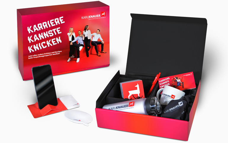 Karl Knauer’s packaging specialists ensure that the selected welcome gifts can be securely positioned in the box with matching inserts, preventing any movement during transport. But it’s not just about the contents. Karl Knauer also offers maximum scope for visual creativity. In addition to classic colours and designs, customers have the option of getting the folding boxes designed entirely in line with their company’s corporate branding. On request, each box can be enhanced with a logo, bespoke printing, premium embossing or a themed sleeve, turning it into a high-quality gift that will help to ensure that the first day at the company or initial contact with the firm remains a cherished memory for the recipient.