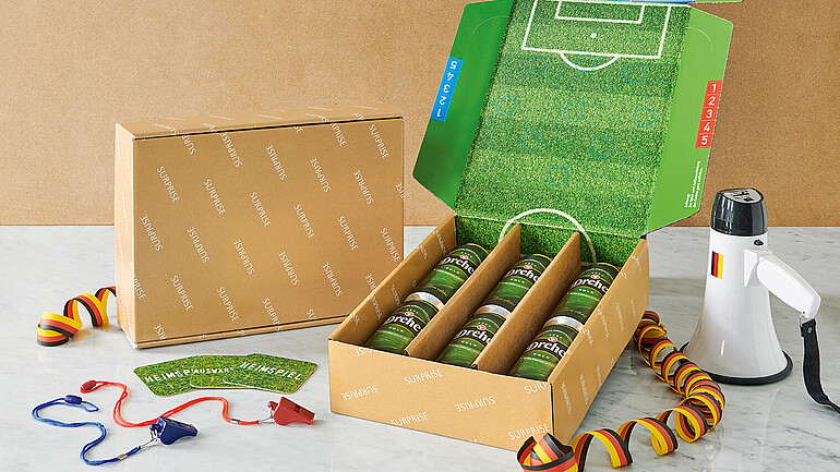 Discover our new Surprise gift box Weihnachten – the perfect present that brings joy and surprises! This gift box offers a unique experience with its subtle scattered print on the outside and magnificent Christmas decorations inside. Ideal for shipping, it ensures sparkling eyes and excitement when opened. Available in 2-bottle or 3-bottle versions, with a length of 360 mm, it provides ample space for exquisite gifts. And after the holidays, the gift box is perfect for storing Christmas decorations.